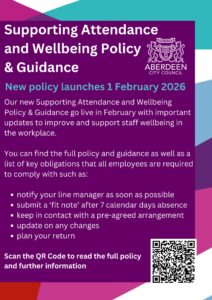 The updated Supporting Attendance and Wellbeing policy and accompanying guidance strengthens our approach to supporting employees through periods of sickness absence and gives managers clearer guidance, tools and processes to ensure consistent, well supported decision making.